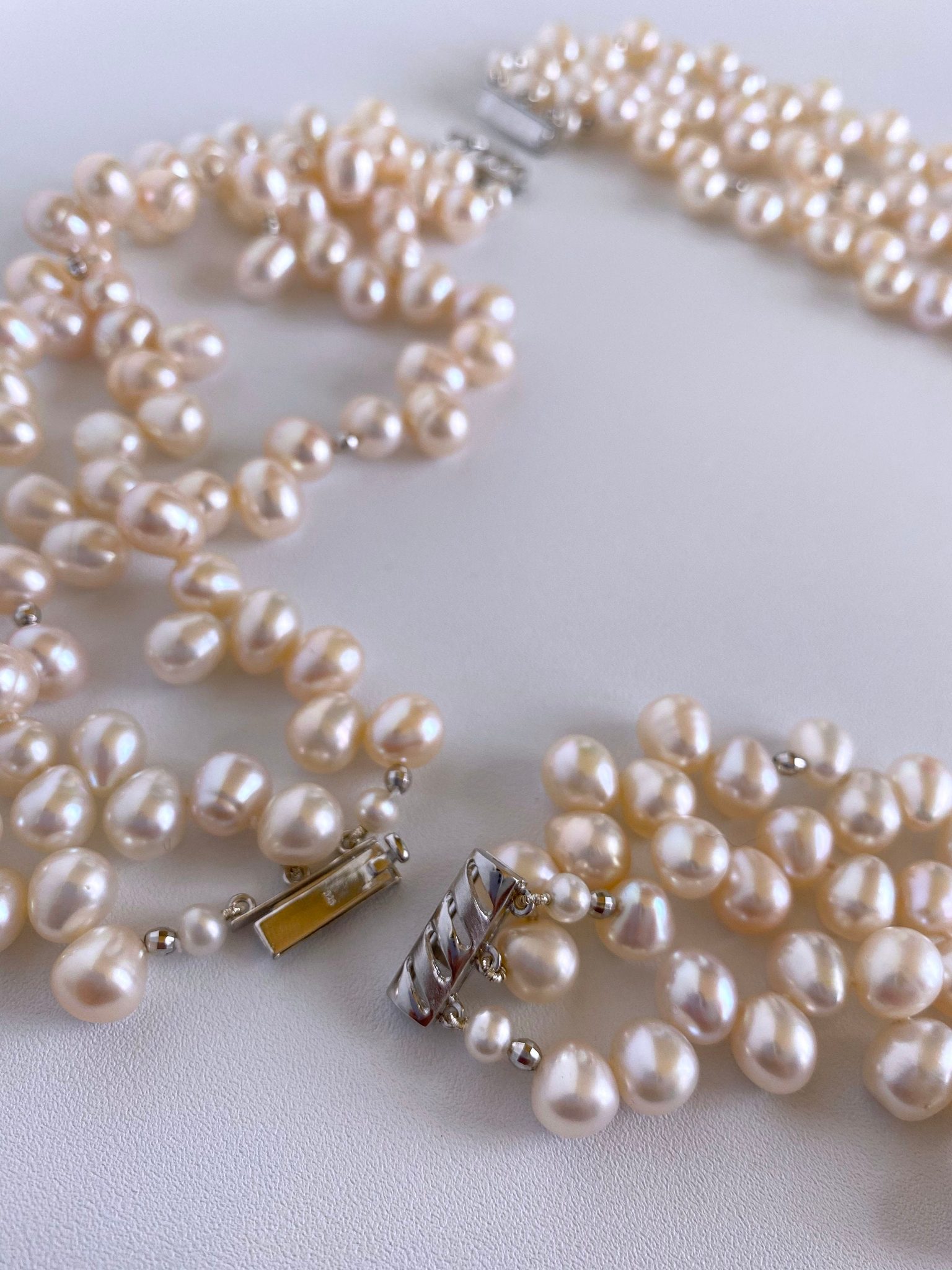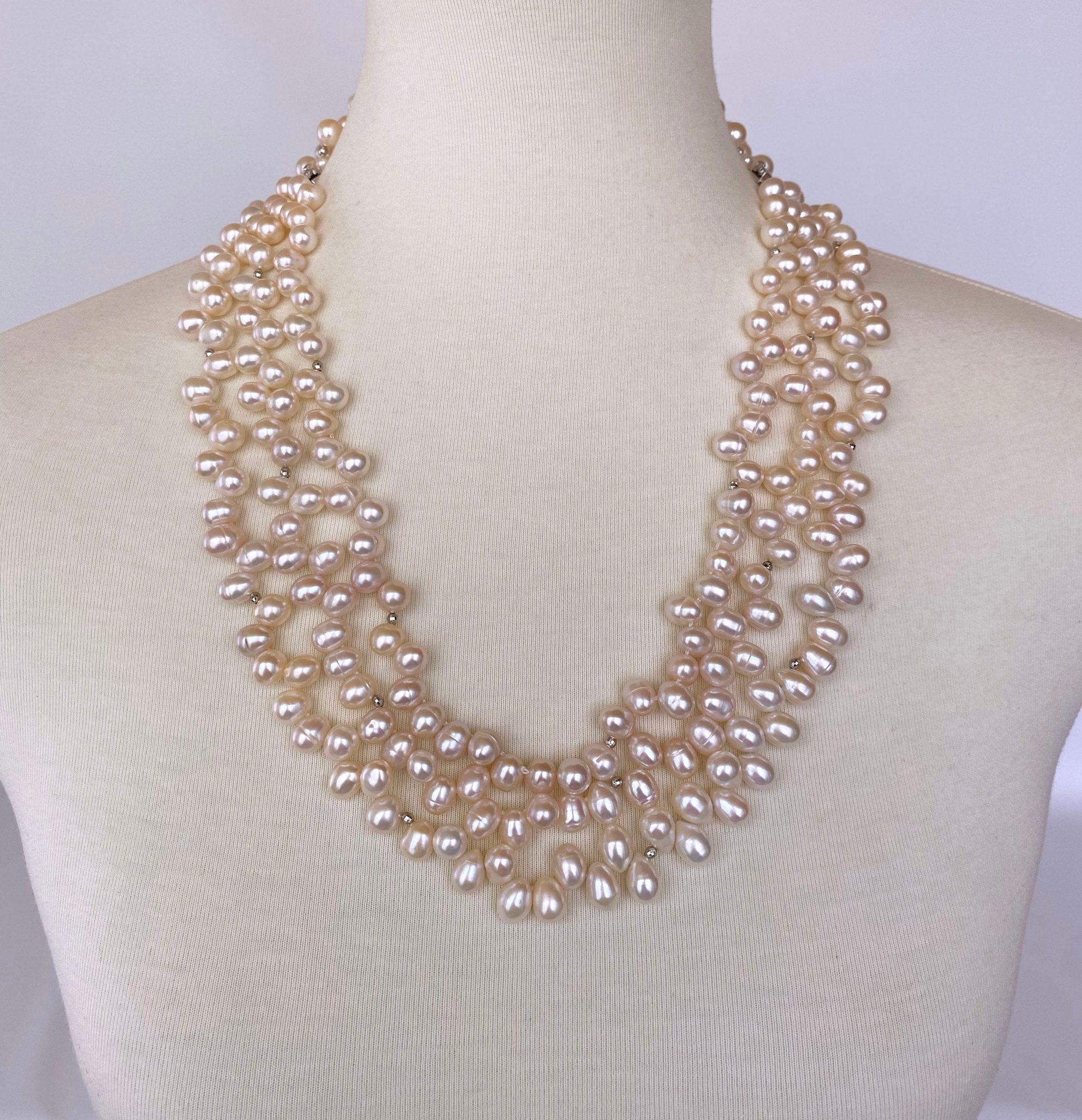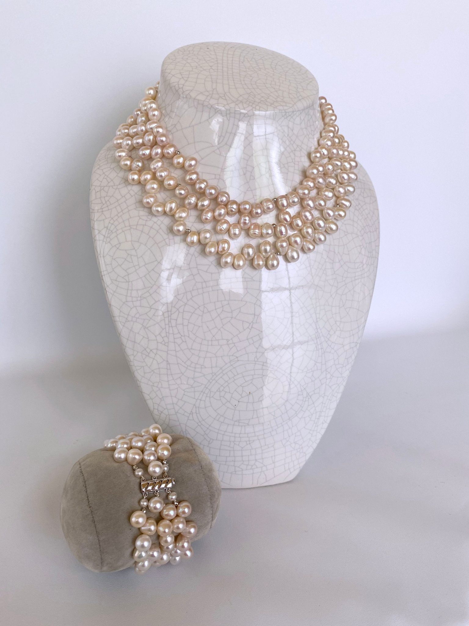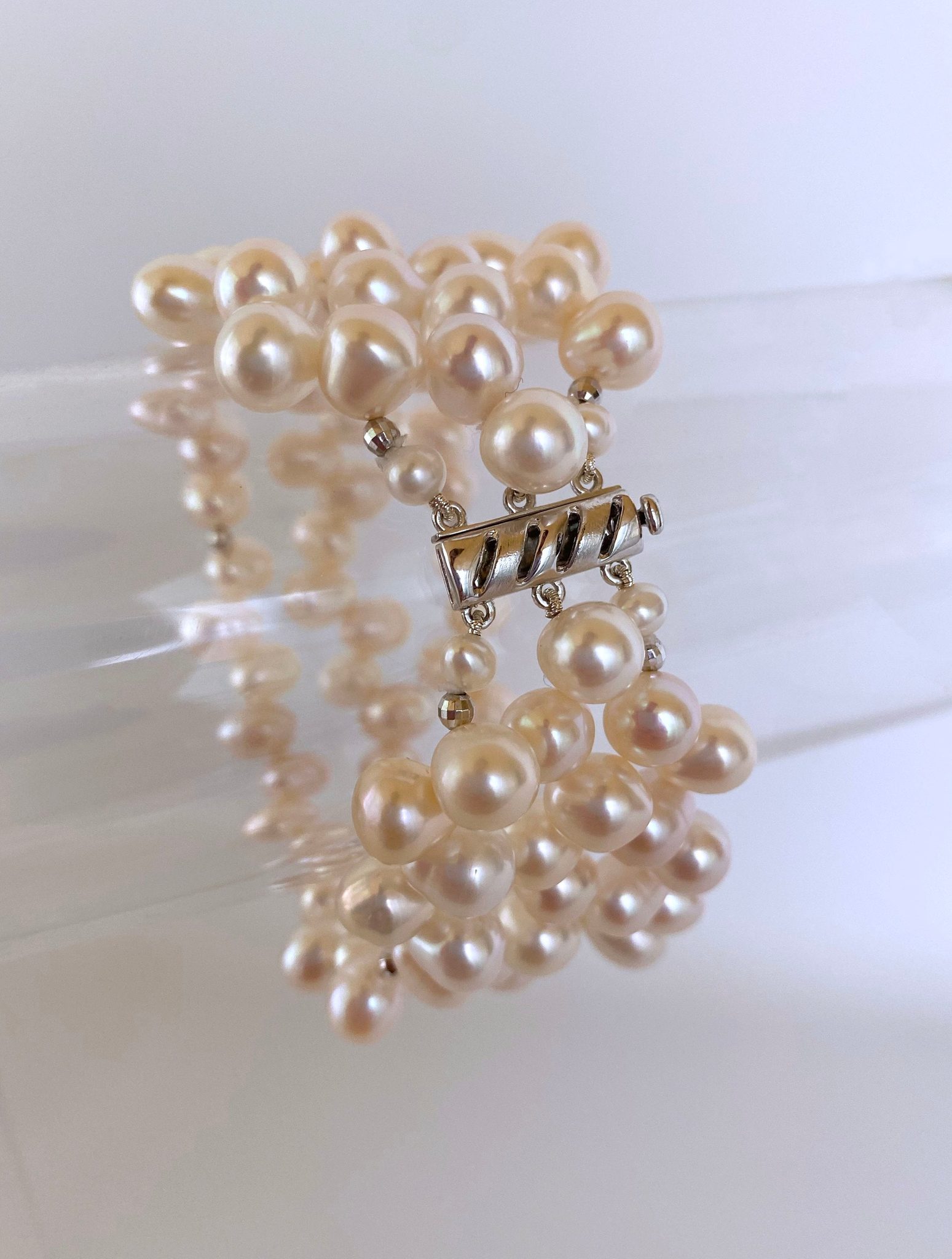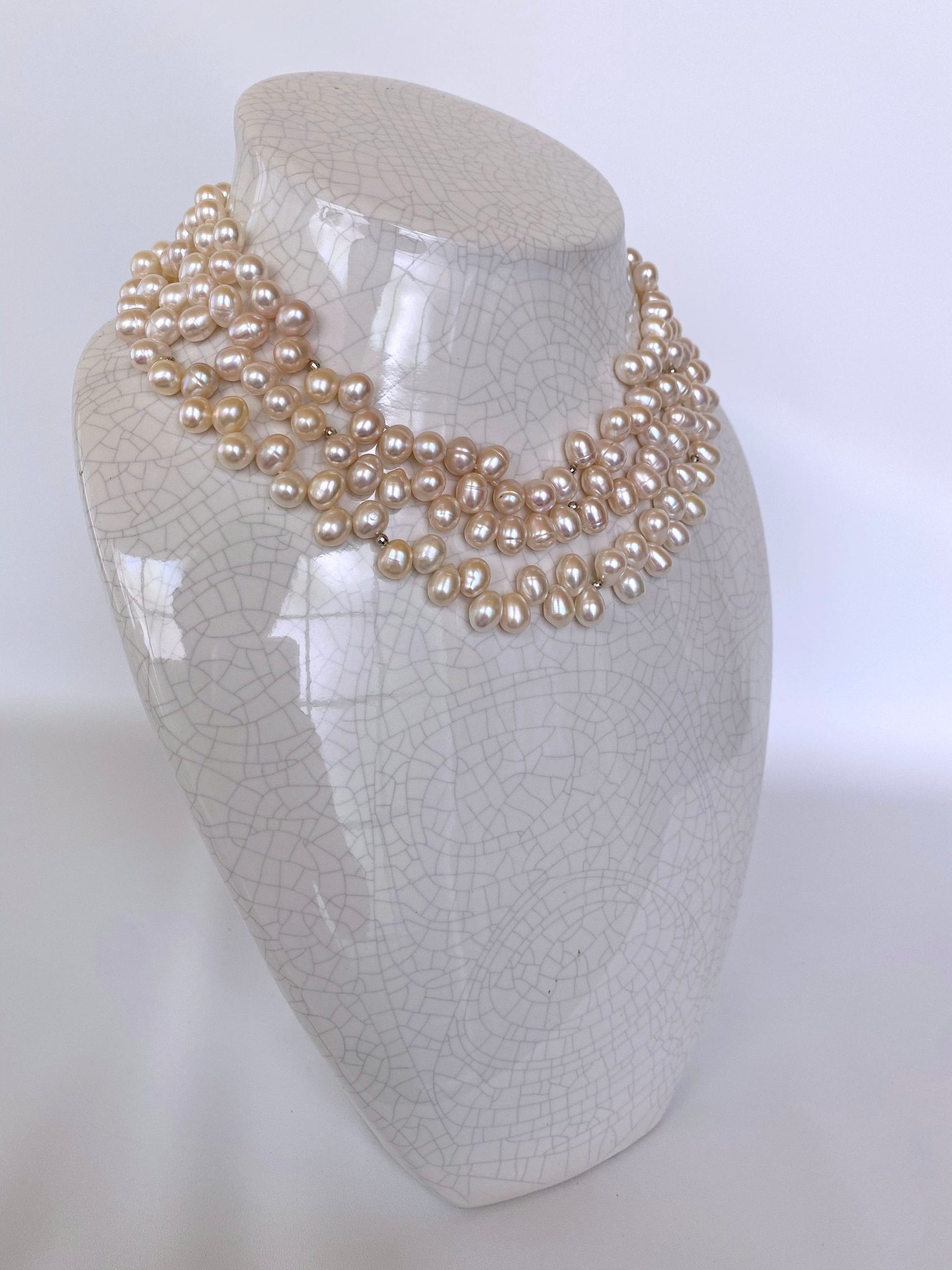 Convertible Three in One All Pearl Necklace & Bracelet with 14K