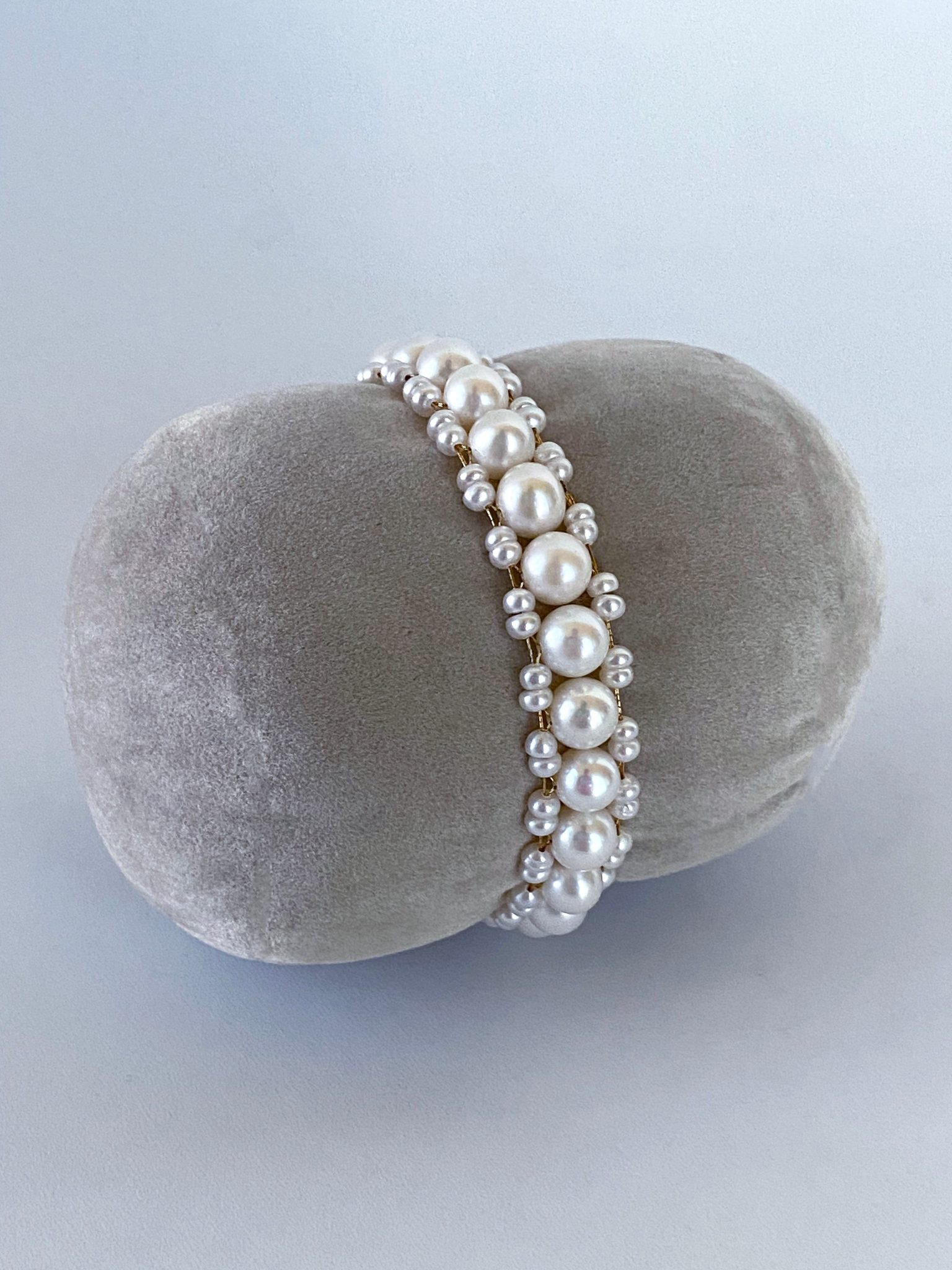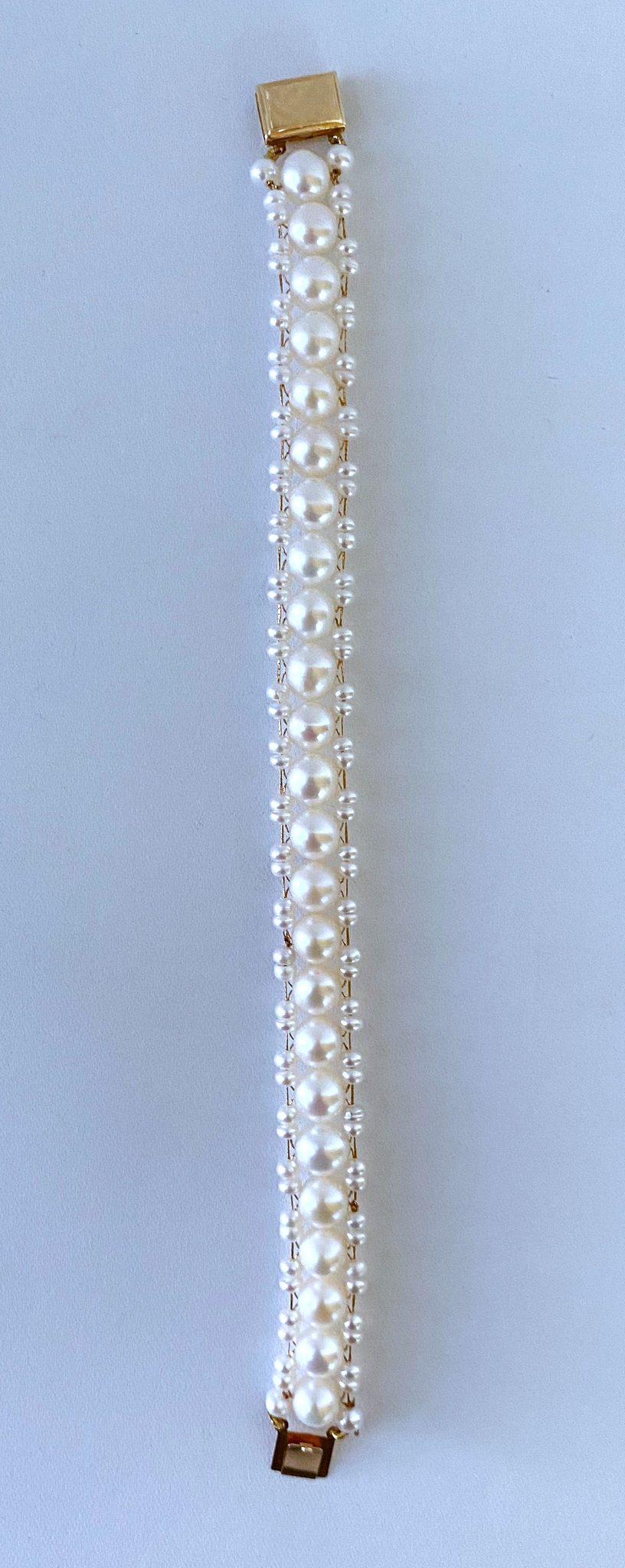 Pearl Woven Bracelet with solid 14k Yellow Gold Clasp